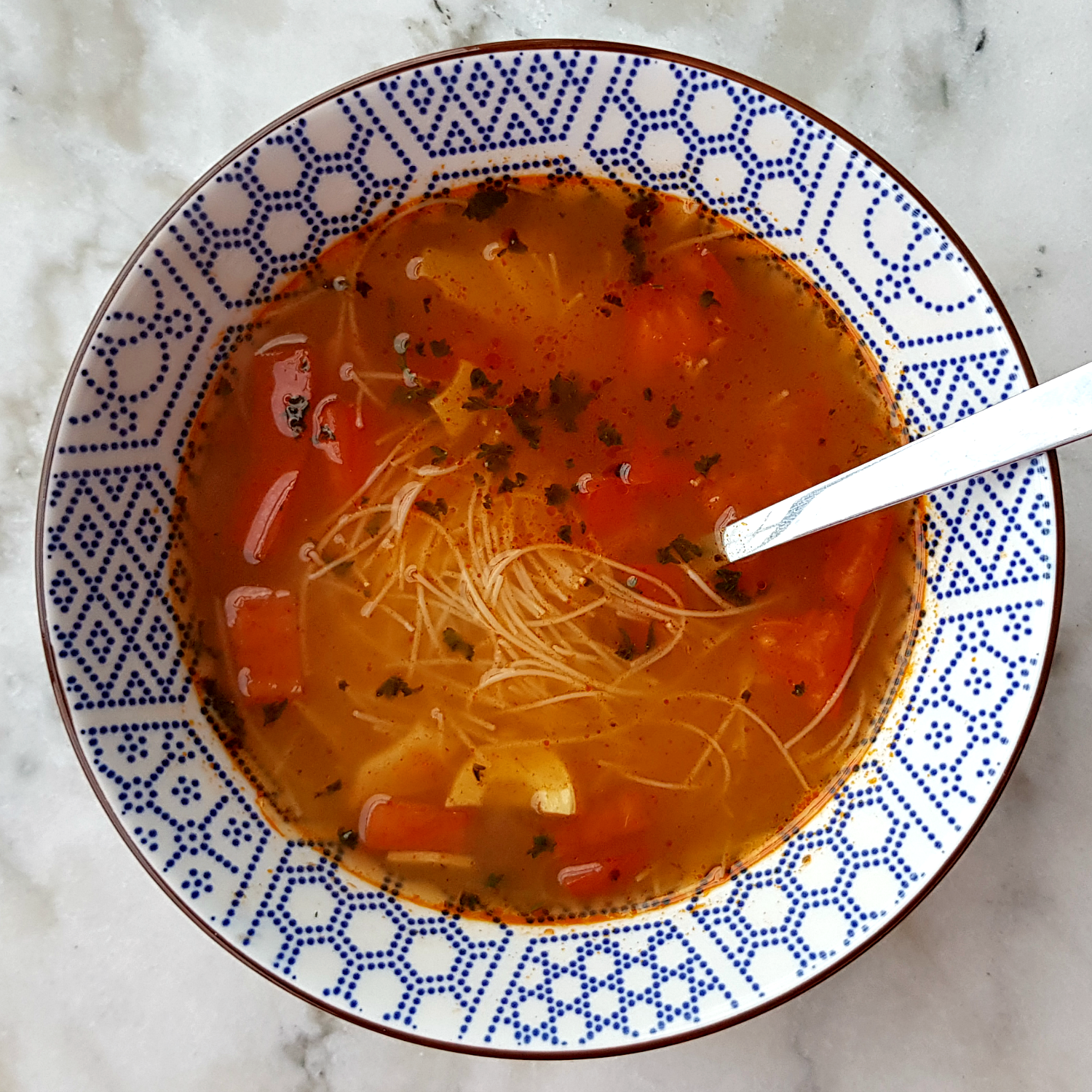 - pokud by vám zbylo trochu grilovaného kuřete ze stánku, nasekejte maso do polévky, dá se i syrové nasekat na malé kousky a 5 minut ho v polévce povařit