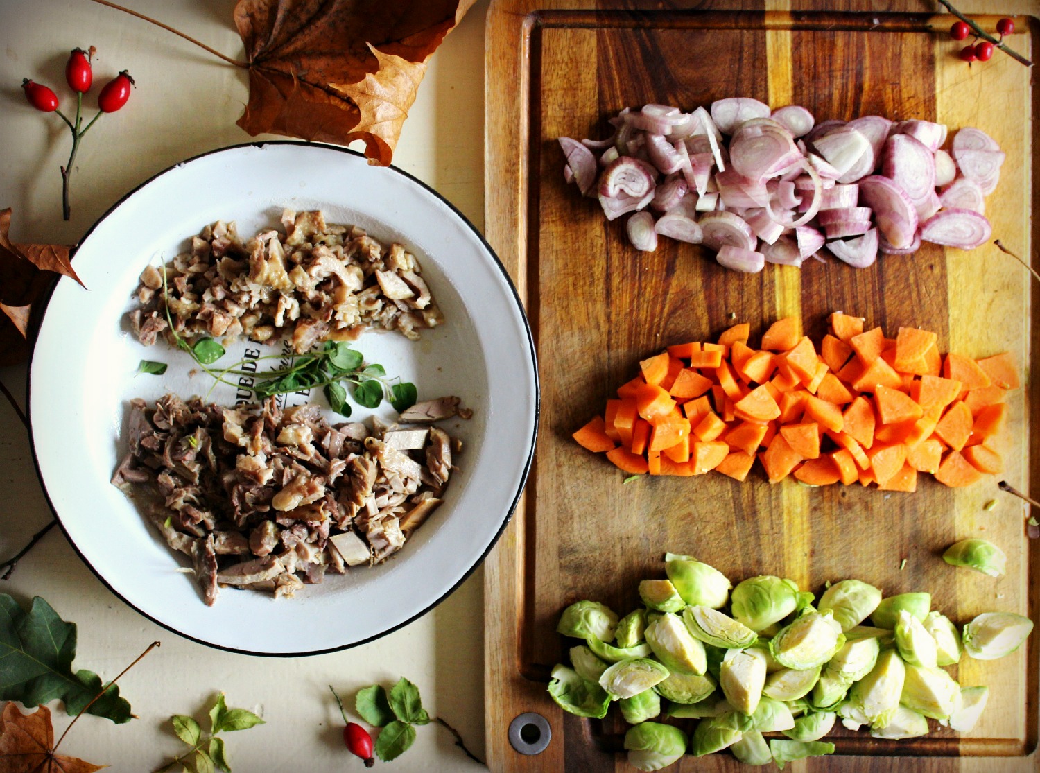 Obrané maso, bylinky a zeleninu si výstavně nachystejte jako já.