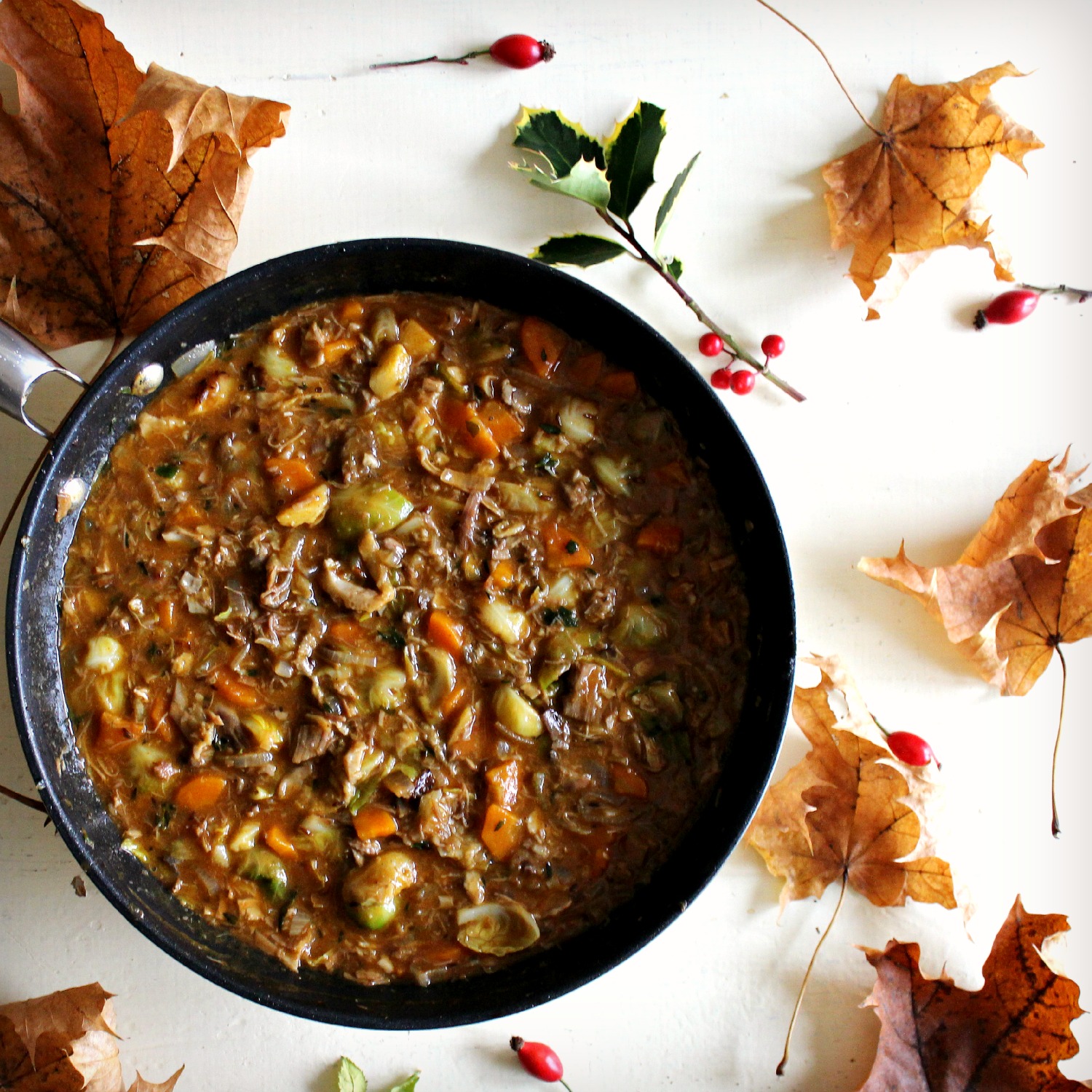 Výsledkem bude pěkně husté ragú, které si v ideálním případě můžete připravit i den předem a zhotovení páje pak bude procházka sadem růžových růží.
