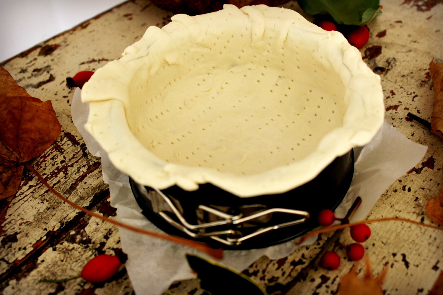 Z trouby vyndejte rošt a pečte páj přímo na spodku trouby. Díky tomu se dno koláče rychle zatáhne a ragů z minulého dne dobře prohřeje. Plus nebude těsto nahoře zlátnout příliš rychle. Pečeme na 190°C asi 30 minut.