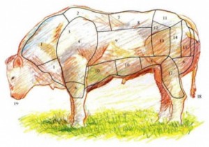 Začínáme samozřejmě s vývarem a tedy také s vařením masa, to trvá nejdéle. Jak moc dlouho, to je otázka kvality masa a spolehlivosti vašeho řezníka. Máme-li být pintlich, na Tafelspitz se má používat vyzrálé maso z mladé jalovice, tedy u nás velmi utopická záležitost. Proto přikládám důraz, pokud možno, alespoň na to vyzrálé. Sehnat květovou špičku není ani takový problém, pokud řezník umí maso alespoň naporcovat, ale stáří hovězího a jeho vyzrálost ovlivňuje dobu nutného tažení vývaru opravdu o dlouhé hodiny. Sama přiznám, mě se to nevyvedlo. Tam, kde vyzrálou květovou špičku prodávají, ji zrovna před natáčením neměli, a tak jsem zašla pro „normální“ maso. V našich končinách to znamená pro kus něco pod kilo, který bylo nutno vařit neuvěřitelných 5 hodin, aby se dalo důstojně konzumovat, ale žádná sláva to i tak nebyla ( a nebyla by ani po 10 hodinách). Tafelspitzová podmínka je květová špička, ale pokud nemáte dobrý zdroj tohoto masa, lidsky vám poradím holt nedělat přímo Tafel, ale vařené hovězí na tento způsob, a raději použít třeba přední nebo nepříliš prorostlou kližku. Maso je pak měkké za polovinu doby a víc si pochutnáte. No co. Cenově se kilogram špičky vejde spolehlivě do dvou set, spíše někde mezi 160 a 180 Kč. Přední a kližka stojí kolem 150 Kč/kg a vždy se uvaří rychleji, vždy je měkké a vývar udělá také dobrý.