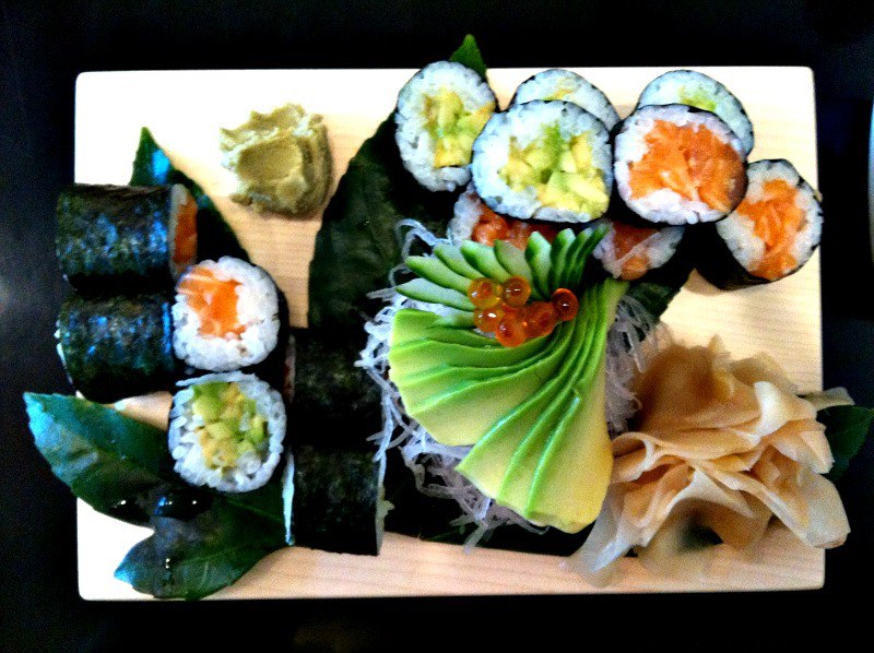 Objednávku jídla jsem učinila tedy jedinou – 6 ks lososových (290 Kč) a 6 ks avokádových maki (190 Kč). Sushi tu mají skvělé. Rozhoně vás neokrádají na náplni rolek, rýže výborně dochucená, rolky skvěle držely, vše pěkně naservírováno, potěšil mě i lososový kaviár navrch. Jedna z fanynek MENUdomů na facebooku mi poslala její fotky zde konzumovaných pokrmů z Foodspottingu, kouknout se můžete tady. Ať máte širší záběr v představách.