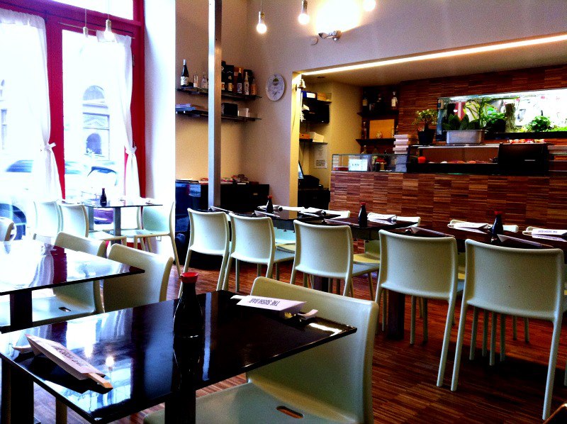 Když jsem přišla do The Sushi Baru, pořád jsem čekala, že někde za rohem přece musí být ještě nějaká „hlavní“ místnost, že tohle je jen takový výdejní prostor a místnost spíše na rychlé obědy. Na dlouhé večeře mě osobně vyhovuje větší prostor tvořící větší intimitu pro hovor s přísedícím. Pařížan by se tomu asi hodně smál, tam jsou schopni jíst vybrané pokrmy na kulatém stolečku o průměru 50 cm, a to ještě v kopci na chodníku, kdy se kolemjdoucí otírají rukávy o váš talíř. Mě to tu přijde zkrátka příliš bistroidní. V tom českém slova smyslu, ne tom francouzském. Ale i to prostě asi patří k japonské tradici, na ostrovech se šetří místem. Interiér je tu ale zajímavý, několikrát se tu design za ta léta už měnil, aby se drželi posledních trendů. A na rozloučenou vám při odchodu zazvoní na zvoneček.