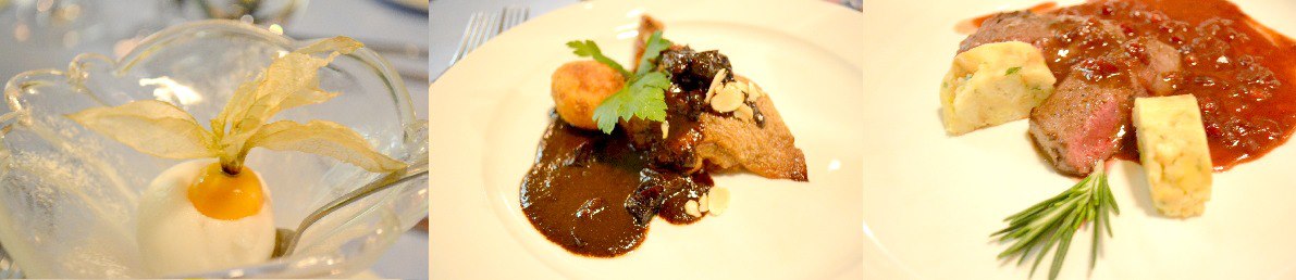 Citrónový sorbet s Grand Marnier je pak takovou malou citrusovou mezihrou před hlavními chody, která povzbudí nejen chuťové buňky, ale podpoří také trávení. Pečenou kachnu, kterou tady dovedli snad do úplné dokonalosti, tentokrát doplnili omáčkou ze švestek macerovaných ve slivovici a domácí bramborovou kroketou. Maso od kosti odpadá úplně samo a omáčka s kousky sušených švestek je kuchařův majstrštyk. Grilovaný daňčí hřbet s brusinkovou omáčkou a jednoznačně domácím kyprým karlovarským knedlíčkem je natolik vybranou specialitou, že i když už budete baštit šestý chod, na talíři vám určitě nic nezůstane.