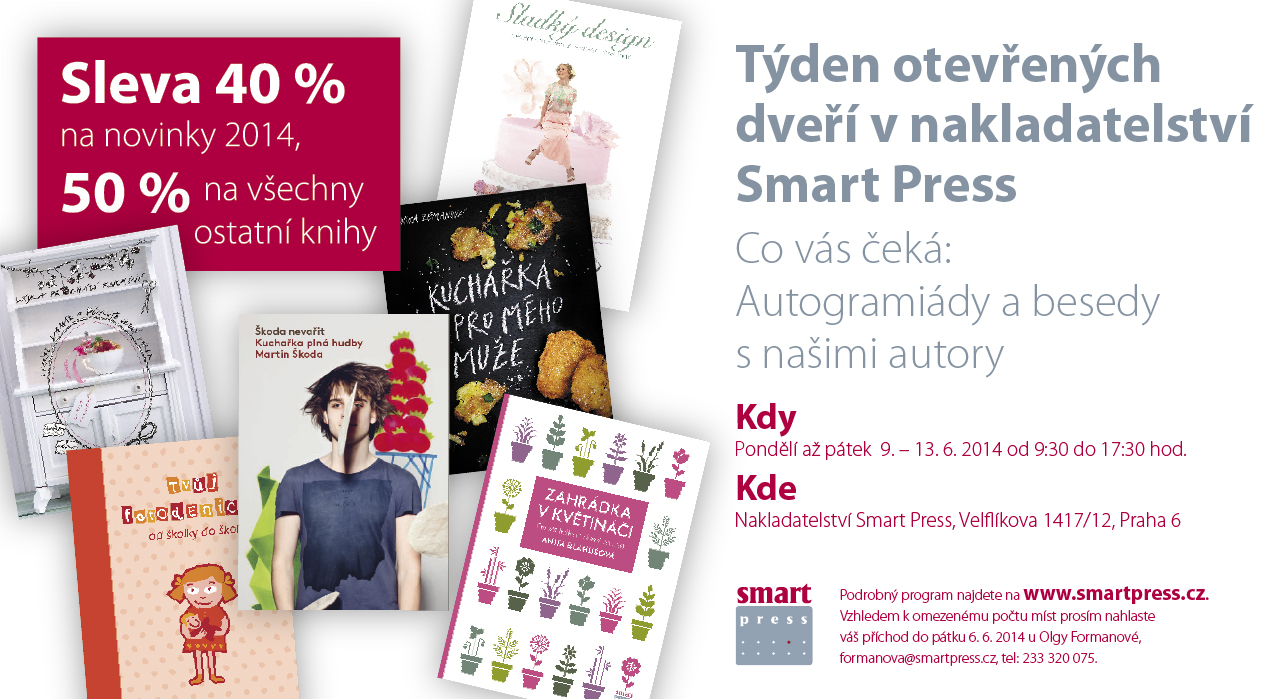 A bacha: Vzhledem k omezenému počtu míst, prosím, nahlaste váš příchod do pátku 6. 6. u Olgy Formanové: formanova@smartpress.cz, 233 320 075.