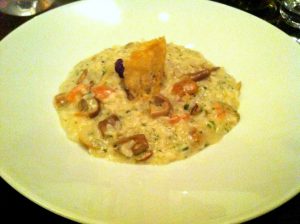 V Zátiší si nelze dát jeden chod. Minimum jsou dva za 890 Kč. Vína k nim za 490 Kč. Pravda, není to žádná láce. Ale porce se za degustační rozhodně označit nedají, ty jsou opravdu fér. Tři chody jsou za 1050 + vína 590 Kč a pak každý další chod za 150 korun. Každé další víno 90. Podle toho, který chod označíte za předkrm a který za hlavní, dostanete odpovídající porci. Nebo můžete zvolit dva hlavní a dostanete obě „průměrné“. Já jsem zvolila na začátek 1. Křepelku pečenou na medovině, listový špenát a perníková omáčka. Křepelčí supreme se rozpadaly, ale byly šťavnaté, čerstvý špenát na rychlo sušený, trochu nakrouhané čerstvé červené řepy a slanina…ale hlavně, ta omáčka! Perníkověji nechutná ani nevoní ani samotný perník. Paráda. Dokážu si to představit jako skvělý vánoční chod. Jen by mi, pokud by byl hlavní, chyběla nějaká příloha, třeba polenta. Hlavním chodem bylo Arborio risotto s hříbky, bio parmezánem a lanýžovým olejem. Lanýžový olej jsem tam nikde nerozklíčovala, ale jedná se o jemnou záležitost a tady byl hráčem číslo jedna ve výraznosti chuti parmazán. Chce se mi říct bohužel… Risotto mi chutnalo, byl ho opravdu kotel, snědla jsem jen půl. Ale více by odpovídal název „parmazánové risotto s hříbky“. Ve videoreceptu jsem to proto pojala více houbově.