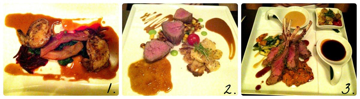 2. Telecí filet, tedy svíčková na liškách a cuketě, spolu s bramborami zapečenými s hrubozrnnou hořčicí jen potvrdila, že příprava masa nedělá místnímu kuchaři žádné problémy a na místo jinde nezbytného ostrého steakového nože by tady bohatě stačila i lžíce. Snad jen lišky a cuketa mohly projít poctivější úpravou, ale pokud je zas jinými preferována křupavější konzistence, pak bylo vše v pořádku. Šalotková a krémová telecí omáčka vše úžasně doplnily. 3. Jehněčí kotletky v hořčično-bylinkové krustě s estragonovou a hořčičnou omáčkou a bramborami zapečenými s hrubozrnnou hořčicí byly naprosto famózní, křehké, bez jediného náznaku toho, že vůbec jíte jehněčí. K tomu chuťově velmi výrazné omáčky a k nim přesně padnoucí brambory, to vše v porci přísně nedegustační. Úžasné. Ručím všem, komu jehněčí nevoní, že tohle by snědli na posezení.