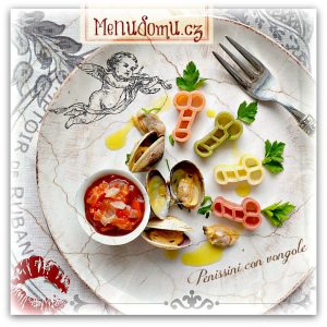 Těstoviny uvařte podle návodu v osolené vodě. Překvapivě nemají zůstat tvrdé, ale al dente ano :) V hrnci orestujte na troše másla šalotku do sklovata, přidejte omyté mušle, podlijte vínem, přiklopte a nechte 2 minuty vařit. Sugo připravte podle návodu ve videu, recept je tady.