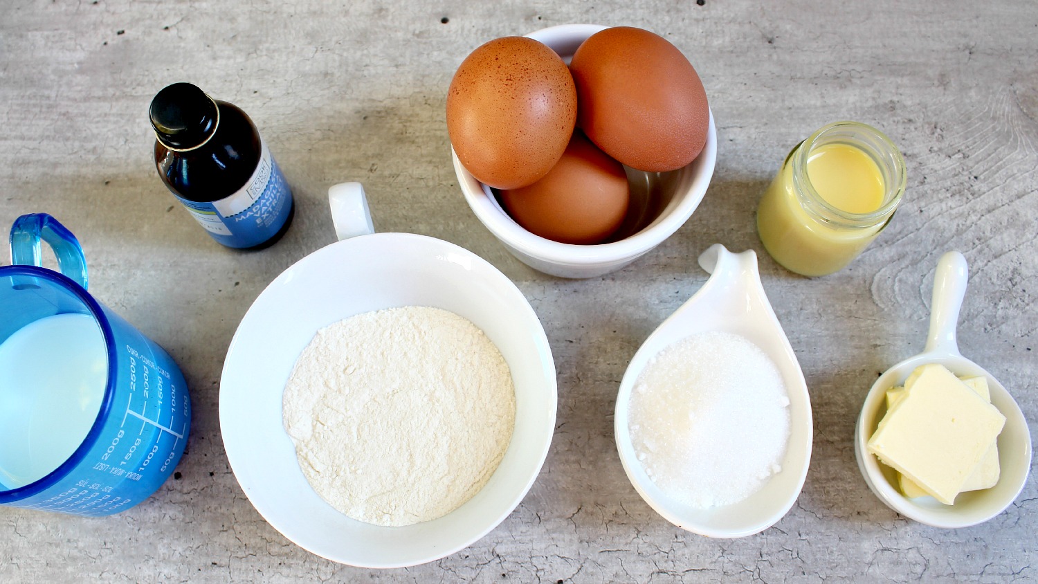 Budete potřebovat plnotučné mléko, hladkou mouku, cukr krupici, máslo, vejce, vanilkový extrakt a pak další dochucovací prostředky. Já zvolila vaječný koňak. Troubu si dejte nahřívat včas. Mističky vymažte a vysypte. Tohle množství vystačí na 3 mističky o objemu 200 ml naplněné až po okraj plus možná malinko zbude, záleží na velikosti bílků.