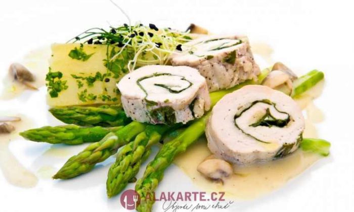 Vařený mělnický chřest s roládou z jarního kuřátka z farmy Štěpánovsko, omáčkou Poulette a bramborem taženým v bylinkovém másle20 / 11 / 2011