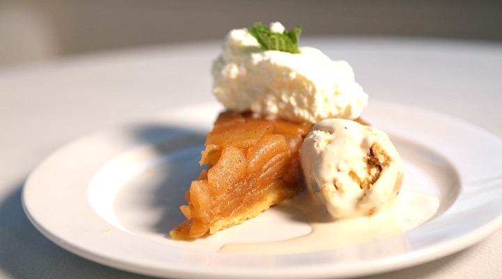 O zapomnětlivých sestrách a dvou starých pannách Tatinových se toho říká hodně, třeba i to, že jejich obrácený koláč miloval a díky tomu proslavil malíř Claude Monet. Ten měl vydyndat recept přímo od nich, když navštívil kraj Sologne jižně od Paříže. Následně ho předal svému příteli kuchaři v pařížské restauraci a ten z něho udělal kolem roku 1907 módní hit. Ve starých původních receptech najdete doporučení na jablečnou odrůdu Orleánská reneta nebo také Golden Delicious. Já vám to zjednodušila. Ale berte jablka česká a méně se lesknoucí, než jsou ty eurodokonalá naleštěná v supermarketech. Seženete-li Renetu, je to skvělé. Variant je samozřejmě za těch posledních sto a něco let mnoho, tahle je ta má, velmi se blíží receptu od Julie Child.