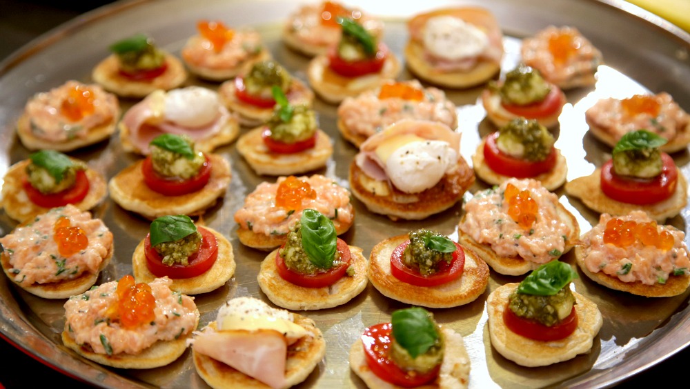 Na videu vedle zdobení caprese a lososového tataráku vidíte také minivejce benedikt s křepelčími vajíčky. Jsou zdravější než slepičí a rozhodně s není čeho bát, když chcete, aby bliny dostaly luxusnější ráz. Jak křepelší vejce uvařit tak akorát, jak ho pošírovat a také jak na to sázené, o tom opět ve všeobjímajícím křep-vaj-článku ZDE.