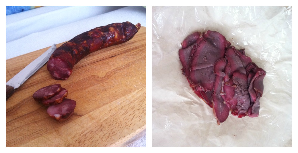 Klobáskový ráj. Název tohohle místa zní dost jako pěst na oko, ale až vejdete a začnete to oko valit ven z důlku, uznáte s otevřenou pusou, do které vám místní obsluha ochotně nabídne rovnou něco na ochutnávku umístit, že se takhle jmenovat klidně můžou. Někdo přišel na to, že zvěřina ve výkupech není drahá. A že za ní jsou ale pak koncoví zákazníci ochotni celkem dost zaplatit. Jenže co si počíst s částmi, které tolik nefrčí. Svíčkovou, hřbet a kýtu udáte vždycky, ale to ostatní? Narvem to do klobás! Příšerně lituju, že jsem vám to tam nevyfotila, ale nechte na sebe dýchnout atmosféru obrázky v článku na vágus.cz – mimochodem, tady si toho musíte přečíst víc! Naštěstí jsem si, než jsme se do toho pustili, stačila zvěčnit srnčí klobásu a jelení pršut. V klobáse až moc masa a na pršut jelení až moc jemný maso. Ale kdo by si na tohle proboha stěžoval :-D V tomhle řeznictví najdete tolik možností, že nemůžete nenajít tu pravou pro sebe. Našla jsem si je na webu a pro výčet, abyste pochopili ten rozsah mého nadšení, se podívejte sem. Já to sem ani nemůžu překopírovat, to mi Ctrl a C neberou, paměť error.