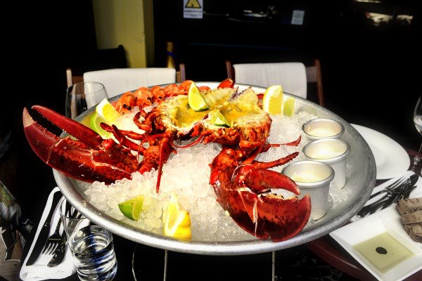 Humr je podávaný na podstavci, v kovové míse plné ledové tříště. Před tím ho vaří ve vývaru a pak prudce schladí.